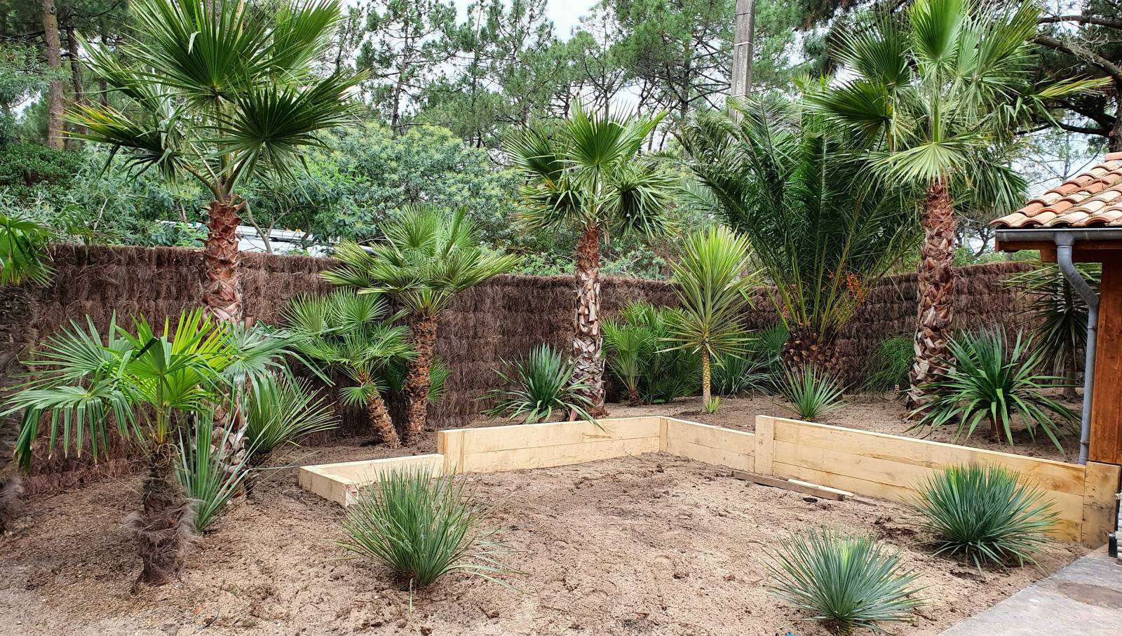 Cet espace offre une ambiance chaleureuse et exotique grâce à la plantation de palmiers et autres végétaux nécessitant un minimum d’entretien et d’arrosage.
